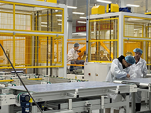 会社には先進的な自動化、人工知能生産ラインがあり、人工作業が少なく、作業者の仕事強度も80%以上ダウンできます。核心自動化設備は自動配線機、ロボットセット機、バスバー半田付け機、全自動ラミネーター、自動枠締め機、自動樹脂充填システム、EL両面外観一体機、JBOX自動半田付け機、選別投入ロボットであり、全ラインのリズムは25秒、ラインごと300MW/年の生産能力はあります。生産流れを全体的に監視することができ、現場状況により、即対応することができます。MESなどのシステムで収集したデータを統計、分析することによって、生産、設備、品質、倉庫、人員などの業務を迅速に対応することが可能です。生産設備は全部国産化であり、生産ラインは全国一流であります。