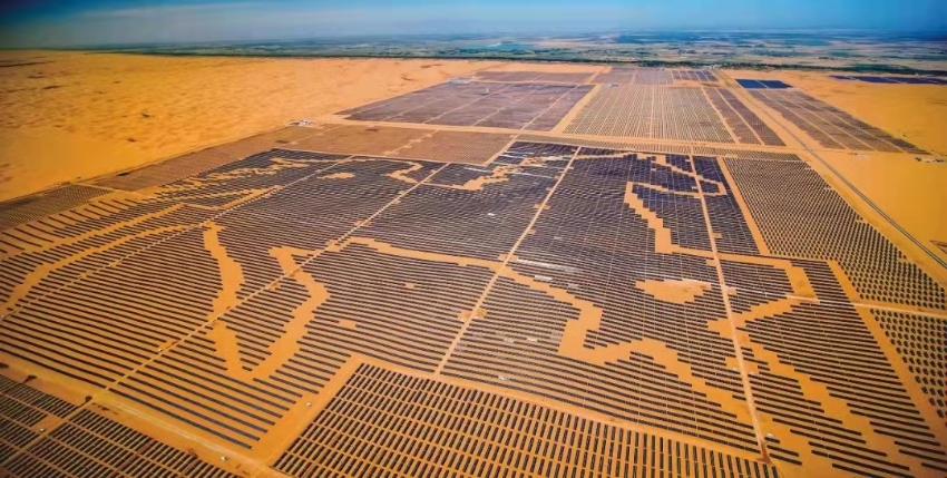 距離內蒙古達拉特電站正式運行已四年光景。自投入運行以來,內蒙古達拉特電站累計輸出綠電約23.12億千瓦時,相當於節省了76萬噸標准煤,減少了185萬噸的二氧化碳排放。為了提高光伏治沙效能,該電站除了進行板上發電,還在板間種植了黃芪、沙棗、黃芩等植物,實現了“林光互補”、防風固沙的作用,有效遏制了庫布齊沙漠擴展。不僅為當地居民帶來了經濟效益,更創造了社會效益,實現沙漠治理和生態修複的雙重意義。